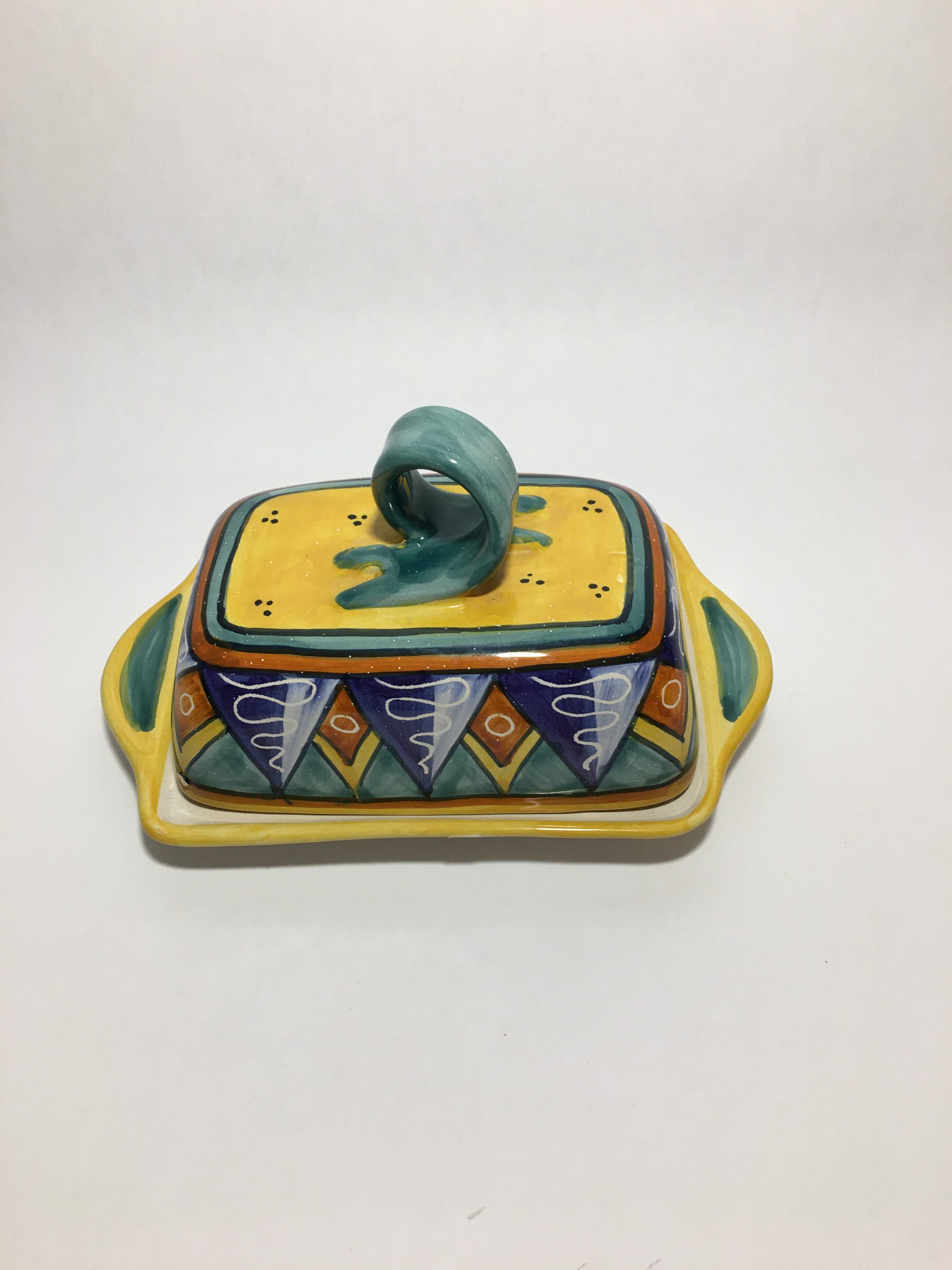 Italian Ceramic Butter Dish Deruta Hand Painted in Italy