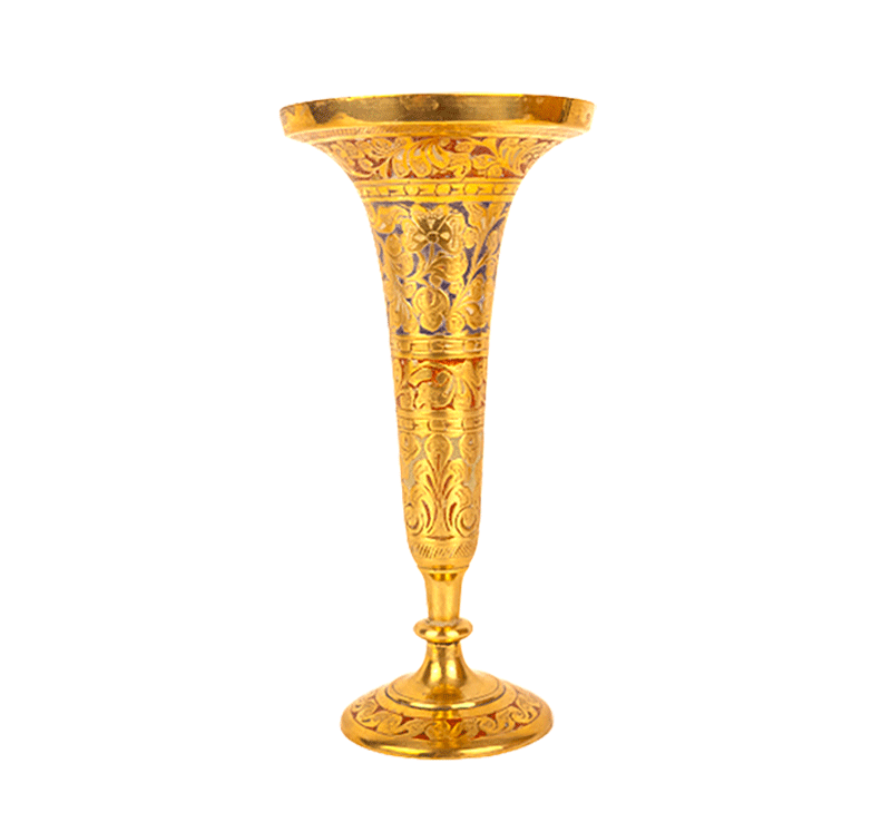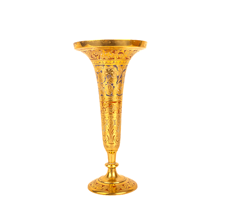 Vintage Brass Trumpet Vase Engraved Floral and Leaf Motifs