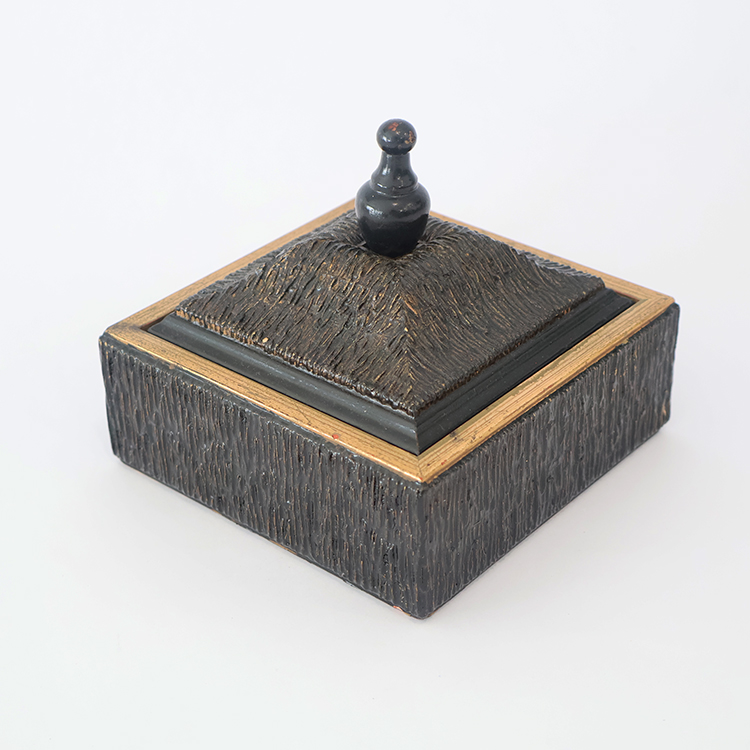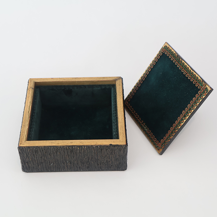 Vintage decorative box with a textured exterior and a lid