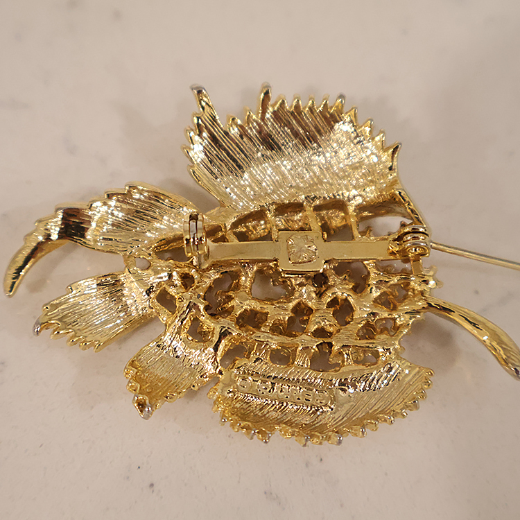 Vintage Leaf Brooch, signed Gerry, color Gold, Pink Rhinestones with Pearls